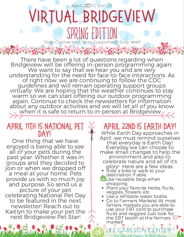 Check out the Bridgeview Drop-in Center’s Newsletter for April 2021 Vol. 25
