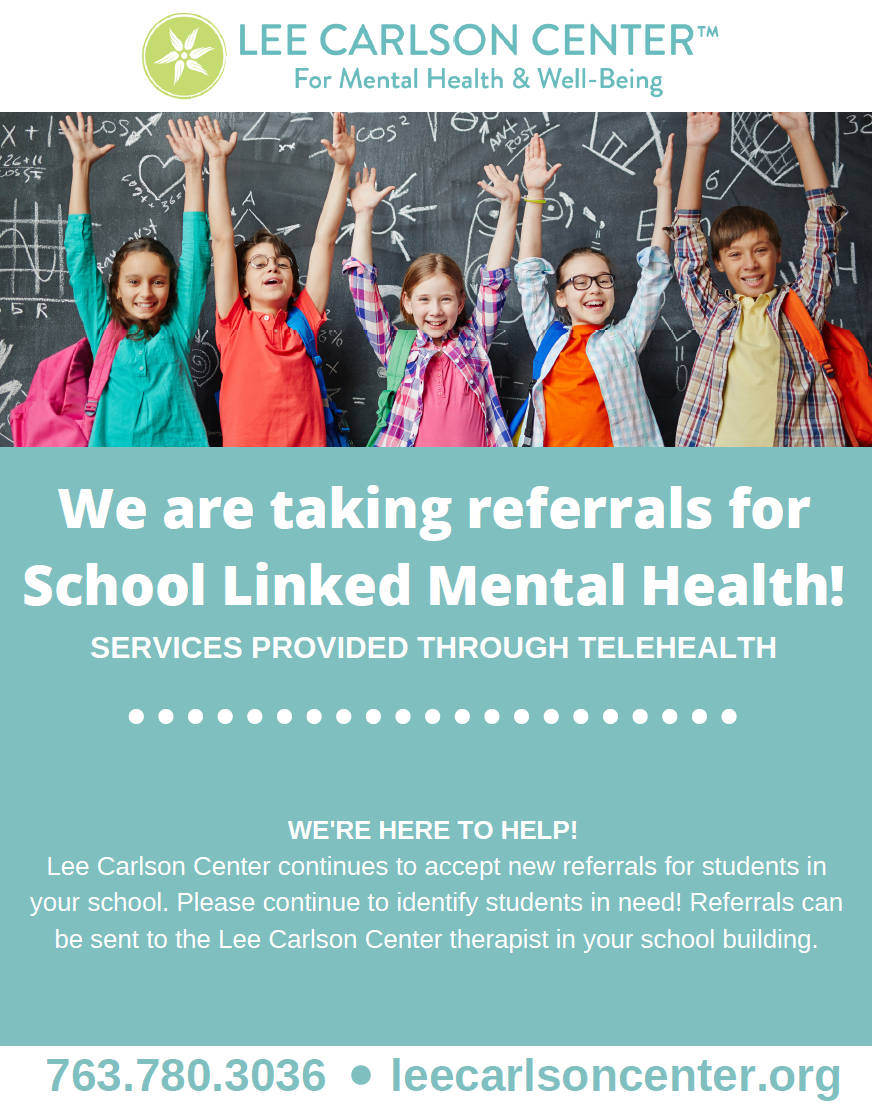 Lee Carlson Center continues to offer access to a range of mental health supports including telehealth, in home, clinic-based and services connected with summer school and the regular school year.