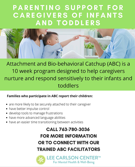 We now feature a 10 week program in Attachment and Bio-behavioral Catchup (ABC) designed to help caregivers nurture and respond sensitively to their infants and toddlers.